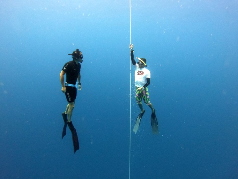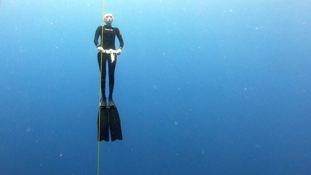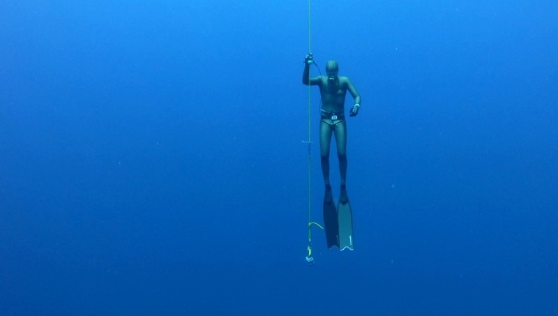 Нейтральная плавучесть «выставляется» на 10 метрах. Именно выставляется, поскольку на первом погружении фридайвер делает небольшое зависание, лишь слегка придерживаясь за веревку. И если с 10 метров фридайвера медленно, но уверено выталкивает наверх, груза надо добавить, а если очень активно тянет вниз – тогда снять. Идеальная нейтральная плавучесть на 10 метрах – это полное расслабление и зависание на одном уровне. Кроме всего полезного – это еще и очень приятно. Можно представить себя астронавтом 😉